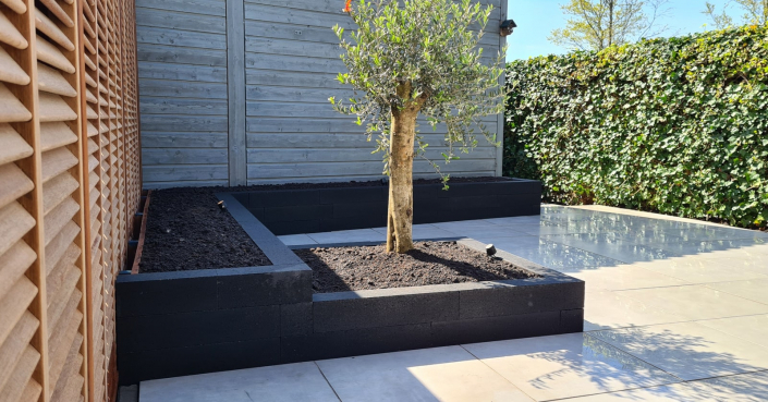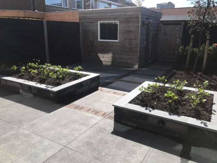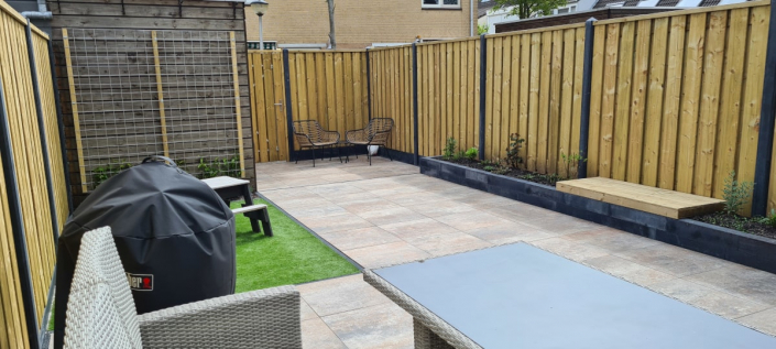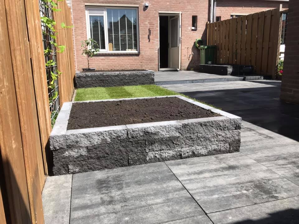 Matthijs dacht goed met ons mee, gaf goede tips en maakte een goede offerte. Hij heeft de tuin betegeld, kunstgras gelegd en bloembakken gemaakt.